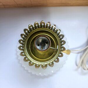 Beautiful vintage electric milk glass hurricane lamp with hobnail base.