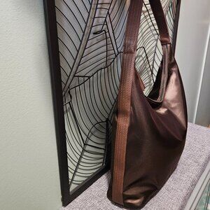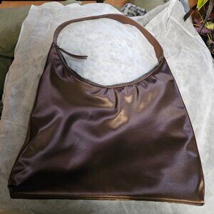 Beautiful large hobo satiny chocolate brown bag with faux leather details