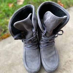 Hush Puppies Brown Suede Lace Up Wedge Boots Wave Reflex Sole Women's US Size 8