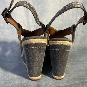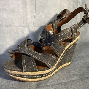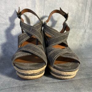 Hush Puppies Denim 4 Inch Wedges Sz 10 Women Strap Sandals/ Braided Detail