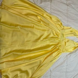 Hush collection women’s dress halter plunge neckline yellow Marilyn monroe style. Sunshine yellow tea length midi dress with flowy circle skirt. 1950s inspired could be worn to wedding or used as bridesmaids dress. Colour reminds me of Disney bell. Would be so cute to wear to Disney land. Satin fabric small mark on bust see photos