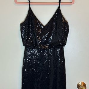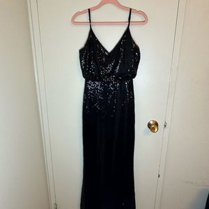 Hush women's dress maxi formal gown sequin black size 4 empire waist fitted. Spaghetti strap formal fitted dress, perfect for wedding or formal party. new with out tags