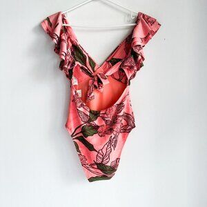 Hutch Floral Salmon Pink Ruffle Detail One Piece Swimsuit S