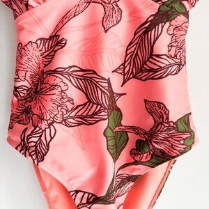 Hutch Floral Salmon Pink Ruffle Detail One Piece Swimsuit S