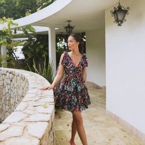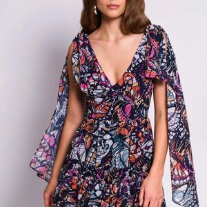 Vibrant mini dress with abstract butterfly pattern. Anthropologie like style. Sleeveless design. Lightweight and flowy. Perfect for a night out or cocktail party. Stunning. Fits true to size (6)