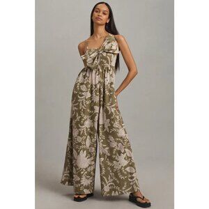 Hutch Poplin Bow Jumpsuit Green White Floral XL.