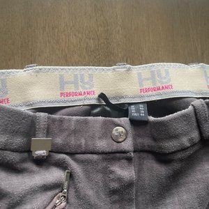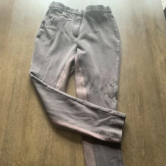 These are full seat breeches with a zip fly, belt loops and a zippered pocket.