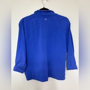 Stylish blue zip-up jacket by Hyba. Features a comfortable fit and practical pockets. PTP 20, Length 23