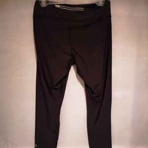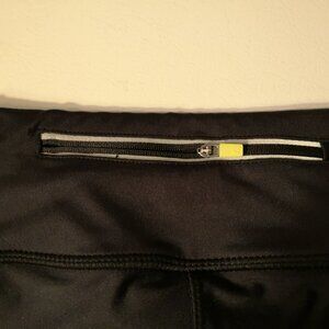 Size medium Black with lime accents Zippered back pocket with reflective strips White dotted pattern 1/2 way down on front of legs Rise - 10" 88% Polyester / 12% Spandex Excellent condition