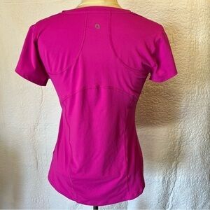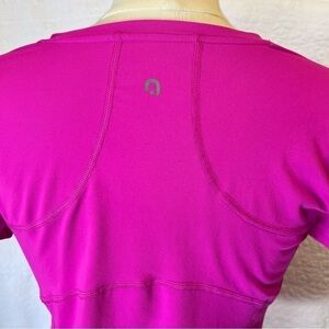 Lightweight soft bright pink activewear workout top. Short sleeves with back hem slightly lower for great coverage. A great breathable top to add to your favourites.