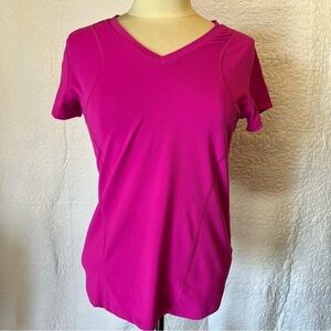 Short Sleeve Activewear V-Neck Pink Workout Hyba Top, Size Medium