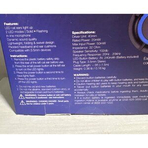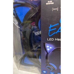 Hype Cat Ears LED Headphones With Mic InLine Microphone Adjustable Foldable Blue