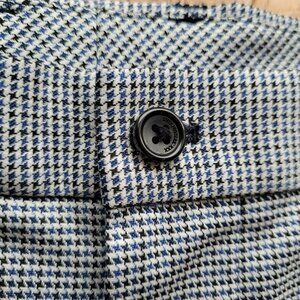 Blue/Black and white Check. Polyester Blend with light stretch. Easy Fit.