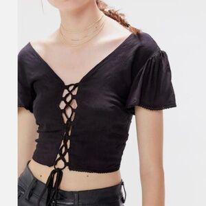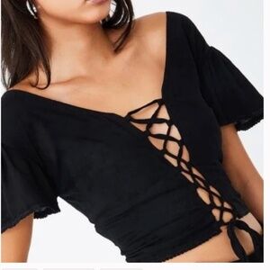 I Am Gia Gwyneth Lace Up Crop Top Black Lace-Up Crop Top