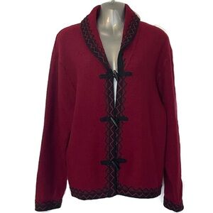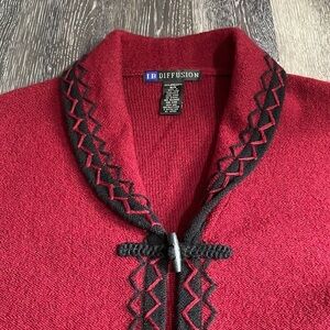 I B Diffusion Red & Black Trim Wool Cardigan Size M