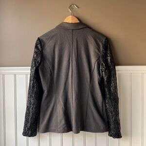 I LOVE TUZZI Dark Green Gold Embossed Lace Overlay Long Sleeve Jacket Size 8