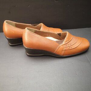 I Love Comfort Ladies Size 7D Brown Leather Upper with Black Wedge Heel