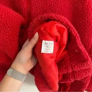 Excellent condition size small I am Gia pixie coat in red. Thru colour is sold out online but retails for $150. Very oversized so could fit up to a large!