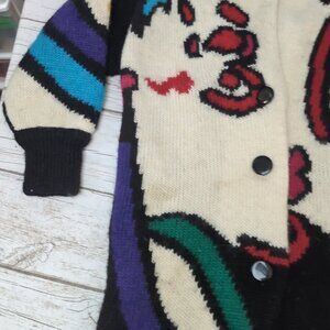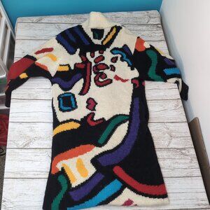 vintage, mohair, artsy, abstract, statement, 80s style, bold print, longline