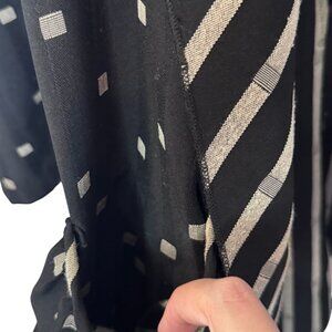 IC By Connie K black and tan Art To Wear patterned open front cardigan size S