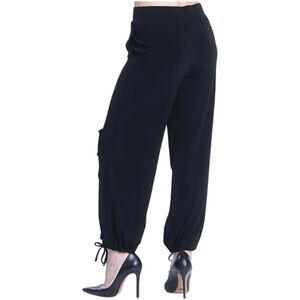 IC COLLECTION BY CONNIE K Comfy Black Button Detailed Pull On Jersey Pants L
