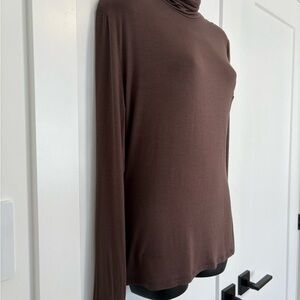 ICHI Brown Turtleneck Long Sleeve Top Basic Soft Shirt Size Medium