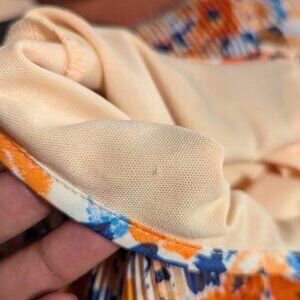 Great condition, worn ≥5 times. No visible stains, see pictures for imperfections. Material is a blend of new and recycled polyesters. Slip is sewn to the dress