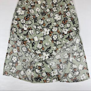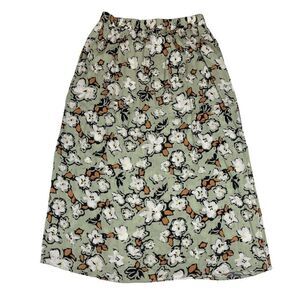 The Izzy maxi skirt is a comfortable summer wardrobe staple, featuring an elasticated waist and side splits in a light crepe fabric in sage green and floral print. Fabric: 100% Viscose, Relaxed fit, Elastic waist, Ankle length. Very good used condition. Please see photos for approximate measurements.