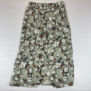 ICHI IZZY MAXI SKIRT - GREEN FLORAL Women's Large Relaxed Fit Elastic Waist