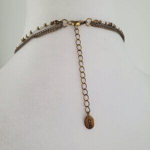 ICING Long Beaded Chain Fringe Bib Boho Necklace Bronze & White Gold Tone
