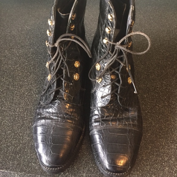 ICM Italian NWT black leather (croc embossed) Italian boots with gold grommets, 37 or US 6.5/6; these are brand new boots without tags,