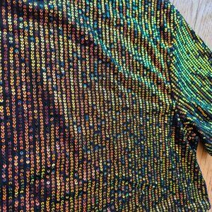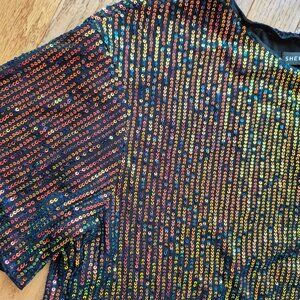 ICON Drop Shoulder Sequin Mesh Crop Blouse L Holiday Outfit