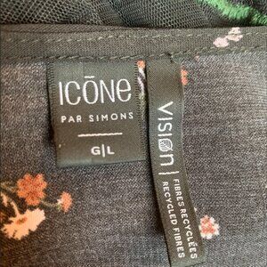 ICONE - Large black short blouse short with lace plunging v-neck small flowers