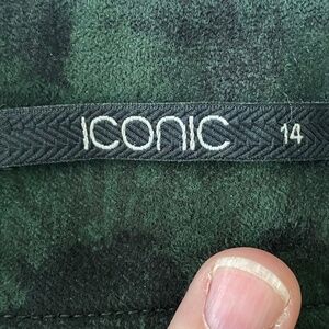ICONIC Women's 14 Abstract Green Floral Faux Suede Skirt 1/4 Zip Festival Whimsy