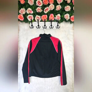 Elevate your athletic style with this vibrant and versatile ID Wear track jacket! Featuring a striking black and bold red colorblock design, this classic silhouette delivers a retro-chic vibe with a modern twist. Crafted for comfort and performance, its lightweight fabric and sleek lines make it perfect for running errands, hitting the gym, or lounging in style. Add a pop of color to your wardrobe with this iconic and eye-catching jacket, sure to turn heads on and off the track!