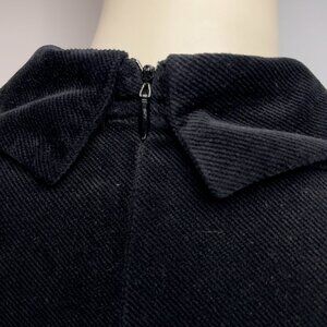 IDANO French Dark Academia Goth Black Velvet Dress Wolf! Embroidered Collar sz 1
