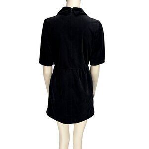 French IDANO Black Velvet Mini Dress with Embroidered High neck Collar made in France
