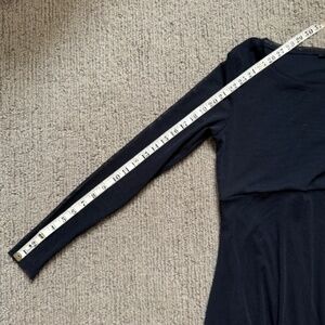 IGOR Mikaela black draping dress. Long tulle dress featuring long sleeves, round neckline and side seam pockets. Bottom part twisted and attached to inner jersey layer to form rich voluminous shape that gently wrapes the body. Horizontally cut above waist it sits perfectly and compliments the body figure. Elegant and feminine dress that can easily be dressed up or down depending on the occasion. No sizing tag. Fits like a S/M.