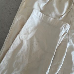 Unisex canvas work pants from the brand IJJI — natural/white/cream colour in size small. Straight leg cut with draw strings and side pockets and back pockets.