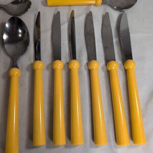 IKEA 15 Lot GRAMMATIK Vintage Flatware Yellow Plastic Fork Knives Spoon Cutlery