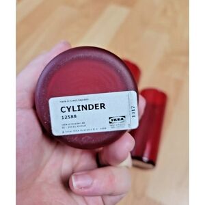 IKEA 'Cylinder' vase bundle. Red glass vases - bundle of 9. Three glossy, semi-transparent, 7.5" tall. One matte, opaque, 5" tall. Five glossy, semi-transparent, 5" tall. Basic, modern style. Larger ones are about 2" across the bottom, shorter ones slightly smaller. These have been used only once, as wedding reception decor, and are in great shape! Will be shipped carefully.