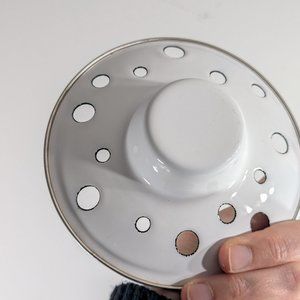IKEA Emalj enamel tea light holder set in white with blue, lime and green holes / dots. The cut outs create interesting shadows. 2 of the tea light holders are in great condition with light surface wear, the other 2 with some rust along the border.