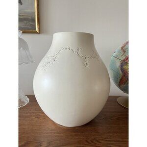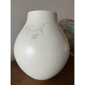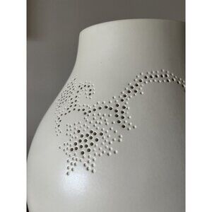 This large high-quality ceramic vase model PS Jonsberg was created by the famous Dutch industrial designer Hella Jongerius for Ikea in the early 2000s. It is from the 2005 limited edition. The beautiful object was handcrafted in China and features a perforated flower motif. Hella Jongerius founded her own studio “Jongeriuslab“ in 1993. She also designed several pieces for renowned manufacturers like Vitra, Maharam, Kvadrat and Nymphenburg.