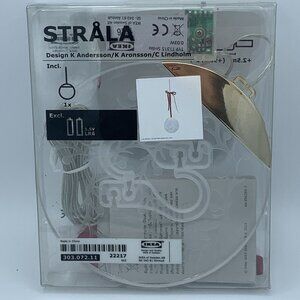 This listing features a set of two sealed IKEA STRÅLA LED pendant lamp kits, designed by K. Andersson, K. Aronsson, and C. Lindholm. These decorative pendant lights are perfect for adding a festive touch to your home decor. The set includes all components needed for assembly and is still in its original sealed packaging.