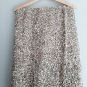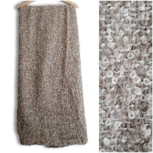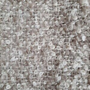 • Comfy mohair blend knit lap blanket in cream and tan boucle style pattern.