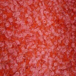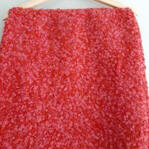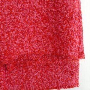 • Comfy mohair blend knit lap blanket in red and pink boucle style pattern.