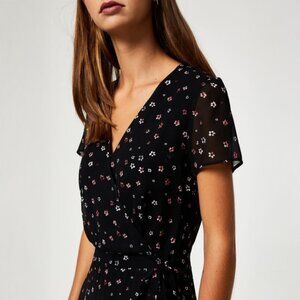 A timeless and feminine piece by French brand IKKS. This beautiful long dress features a soft black fabric with a delicate mini floral print and a flattering wrap-effect cut that enhances the silhouette with elegance and ease. ✨