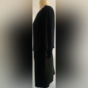 Robe 2 en 1 trompe l’œil façon jupe portefeuille pour un look féminin et sexy. Elle est manches 3/4, bi-matière et bi-couleur (bleu et noir).