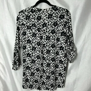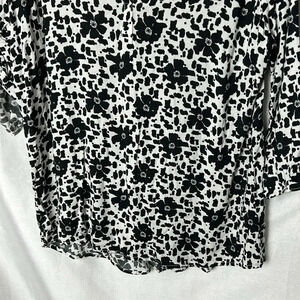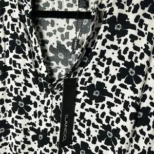 ILANCO NWT black & white abstract floral, v neck , tie strap cuffs, hi low