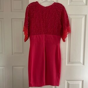 Lace Bell Sleeve Fuchsia IMPERIAL Italian Sheath Dress Size Medium Wedding Shower Date Night Black Tie Cocktail Bridesmaid